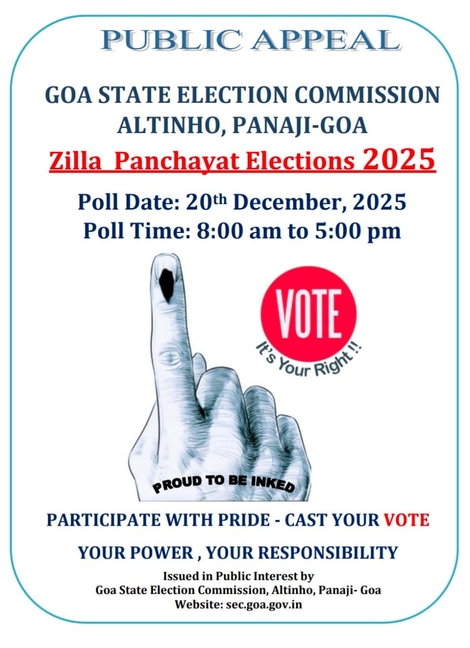 The State Election Commission has been entrusted with the responsibilities of conducting the election to the urban and rural local self-government bodies viz. the Village Panchayats, the Zilla Panchayats and of the Municipal Councils in accordance with the provisions contained in the relevant election procedure rules. The Commission is also required to conduct elections to the Municipal Corporation of the City of Panaji.
